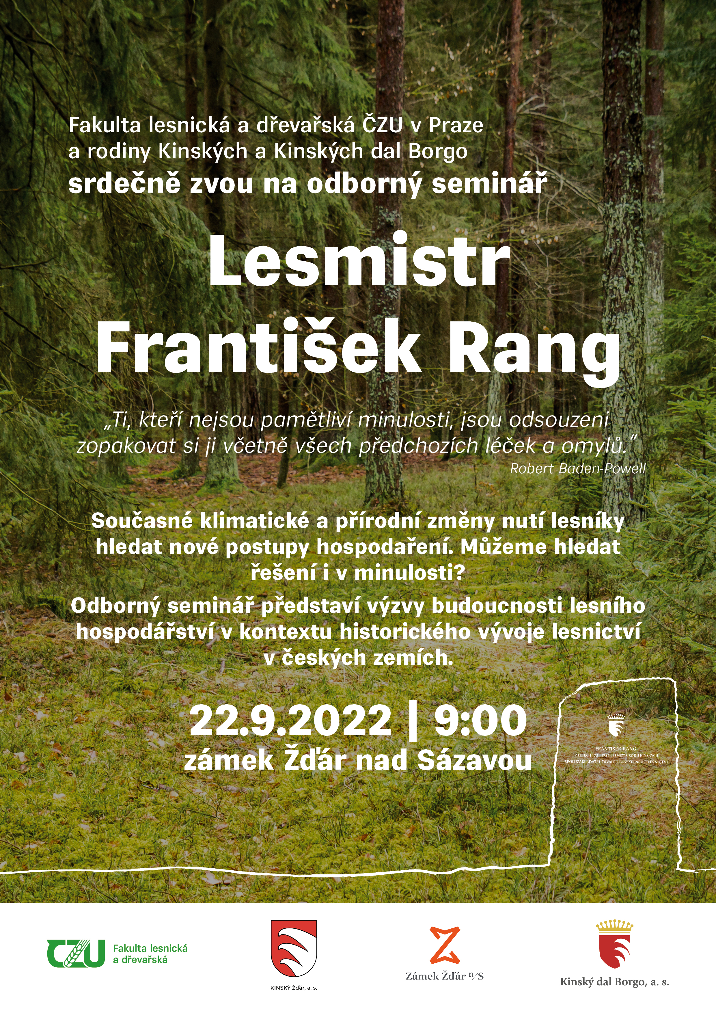 Fakulta lesnická a dřevařská ČZU v Praze a rodiny Kinských a Kinských dal Borgo srdečně zvou na odborný seminář