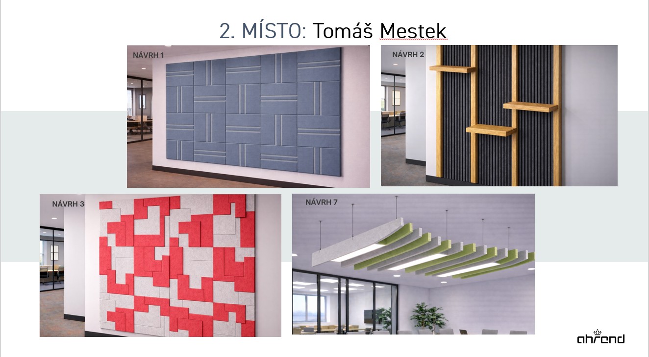 19. 2. 2026 byly vyhlášeny vítězné návrhy soutěže zaměřené na design akustických panelů z materiálu FELT. Soutěž realizovala společnost Ahrend ve spolupráci s Fakultou lesnickou a dřevařskou.