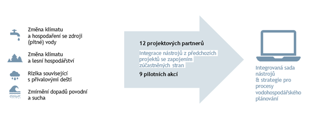 Cílem projektu bylo vyvinout integrovanou sadu nástrojů CC-ARP-CE zaměřenou na klimaticky odolné řízení problémů souvisejících s vodou vycházející z již zavedených nástrojů v této oblasti. Jedná se o online platformu, která poskytuje národním a místním komunitám užitečné informace pro integrované zohlednění různých oblastí působnosti v oblasti hospodaření s vodou ovlivněného změnou klimatu.