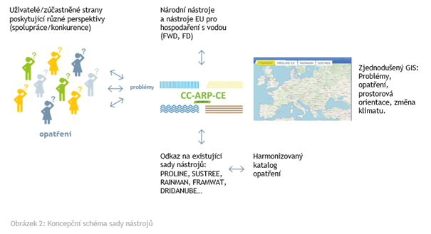 Účelem sady nástrojů CC-ARP-CE je také plnit specifickou úlohu centrální online platformy, která by měla zúčastněným stranám pomáhat s integrovaným posouzením různých oblastí činnosti vodohospodářského sektoru, které jsou ovlivněny změnou klimatu.