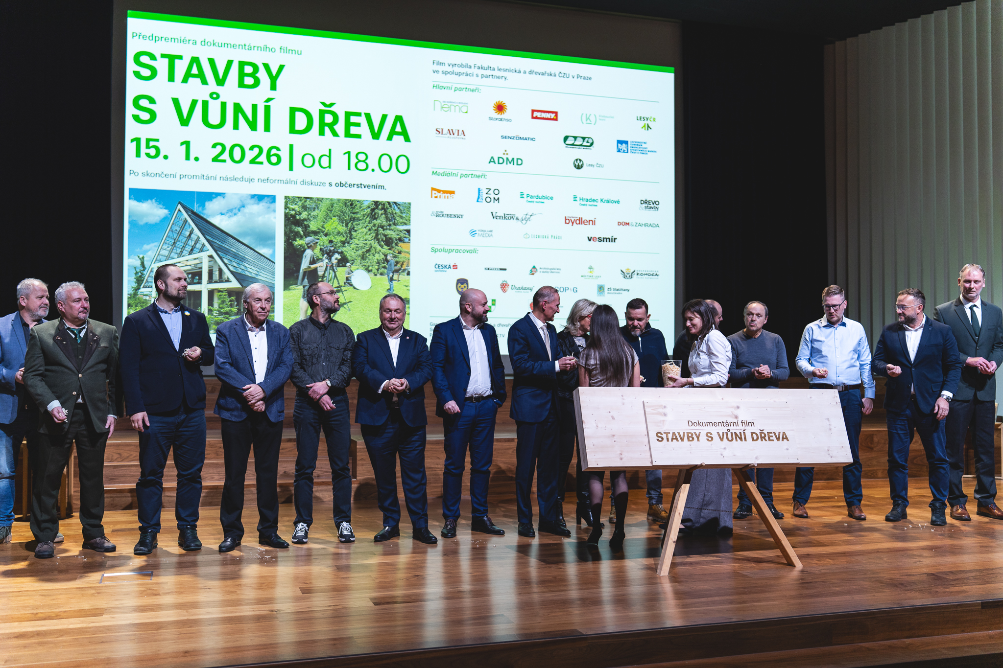 Dne 15. 1. 2026 proběhla předpremiéra našeho filmu Stavby s vůní dřeva, která byla spojena i se slavnostním křtem. Za scénářem a režií stojí dokumentaristka Jana Škopková, hlas filmu propůjčil herec Matěj Anděl a produkci zajistil tým lifeREPORT production.