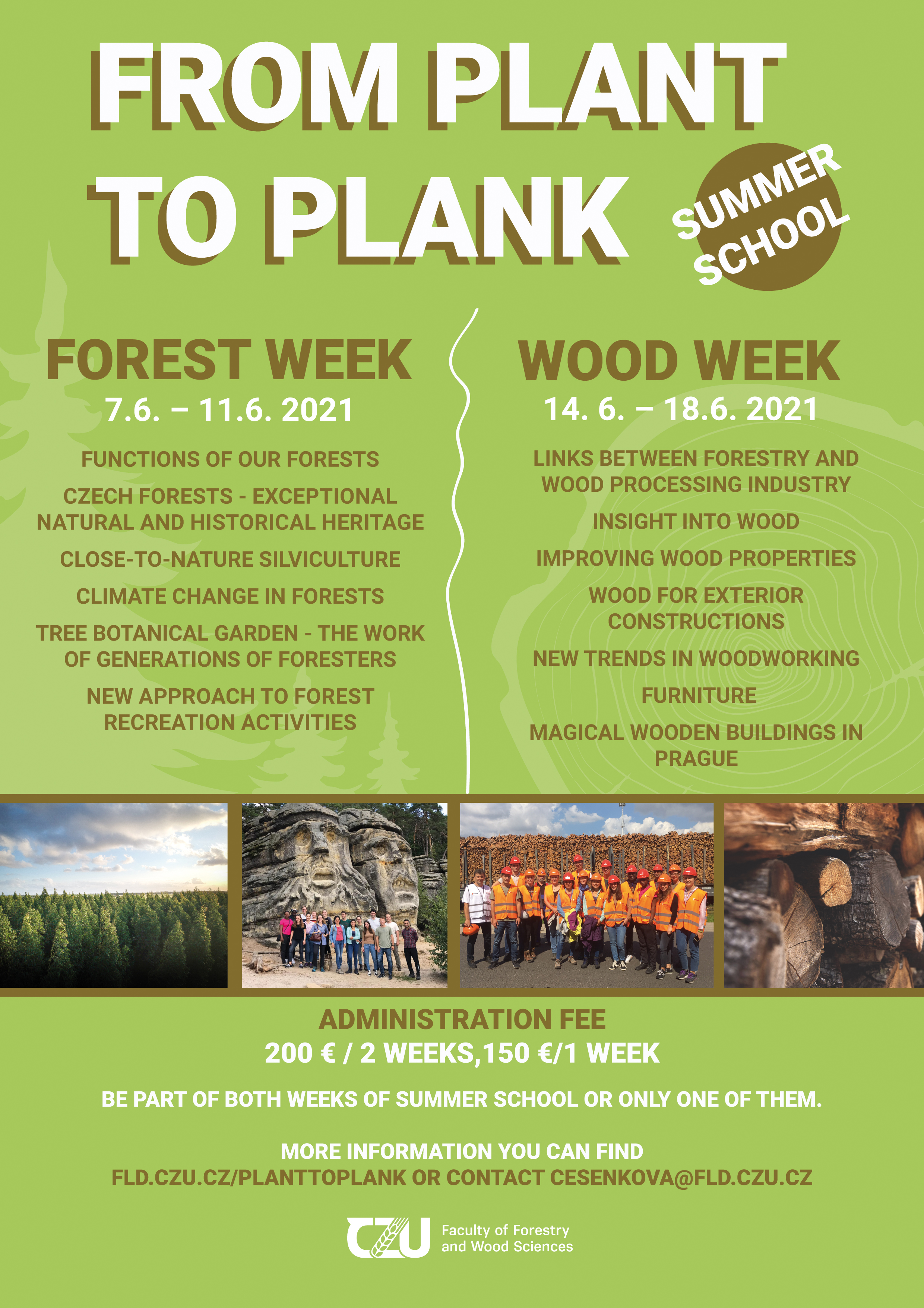 Can I “axe” you a question? “Wood” you like to gain new insights in forestry and/or wood science? Are you looking for “tree-mendous” experience abroad while learning something new? Take part in “From Plant to Plank” Summer School, that will take place in June 2021 in Prague!