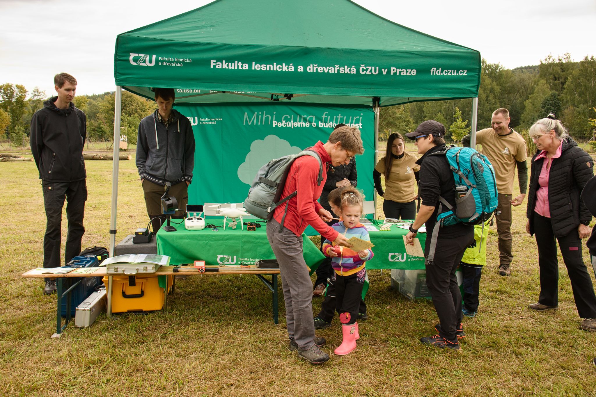 The event was accompanied by a varied program for young and old alike. Visitors could see modern forestry equipment, including a harvester and a forwarder. Younger visitors were particularly interested in the forest education stand and the obstacle course. Children and adults alike were able to find a commemorative pendant with the help of pyrotechnicians from VLS CR. At the ÚVN Střešovice stand, it was possible to take part in a practical demonstration of first aid. The FLD CZU team presented the use of drones in forestry practice. Beekeepers were also present with demonstrations and tastings. Children who collected stamps at all the necessary stations could win one of twenty gift backpacks from VLS CR in a raffle.